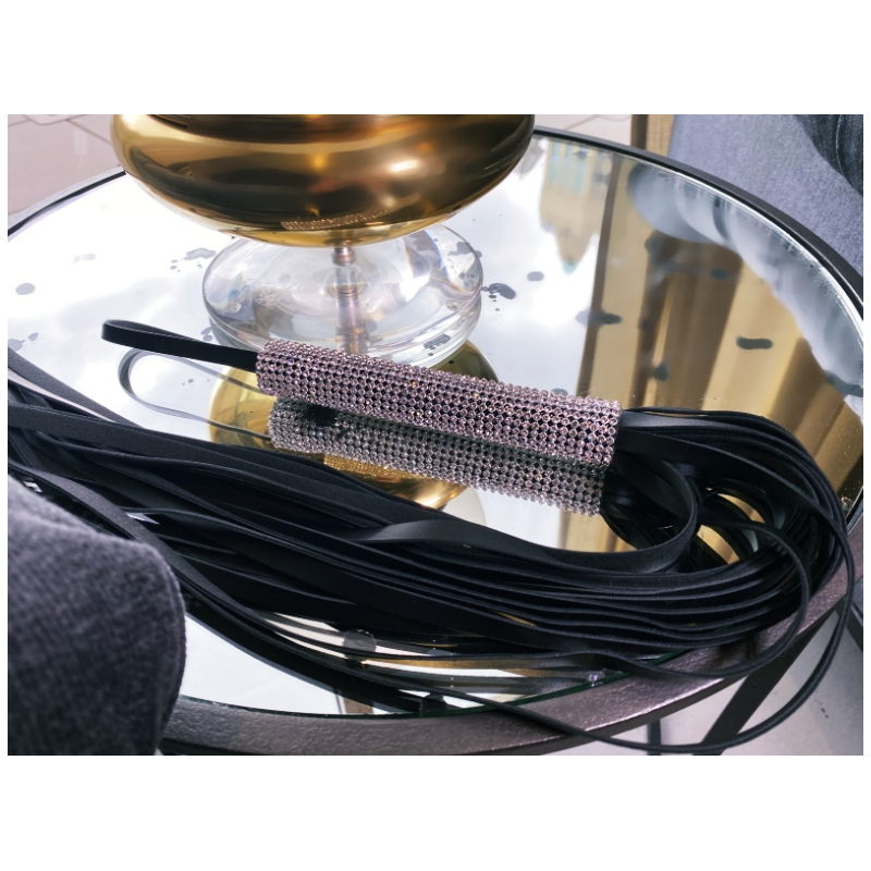 Meet Tyche - a black leather sex pleasure whip with a delicately-crafted diamond handle by V For Vibes. The perfect companion to explore sexy teasing techniques with!